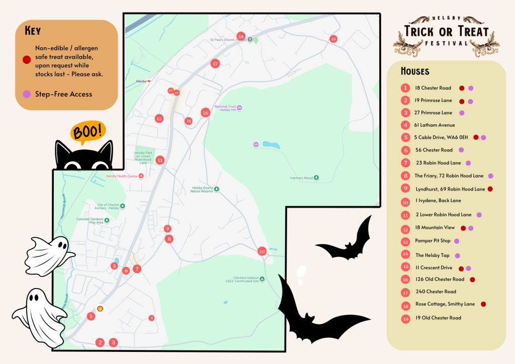 We expect the map to be published around 1 week before the trail, so be sure to add boo@helsbytrickortreat.co.uk to your contacts to avoid our communications going to the spam box!